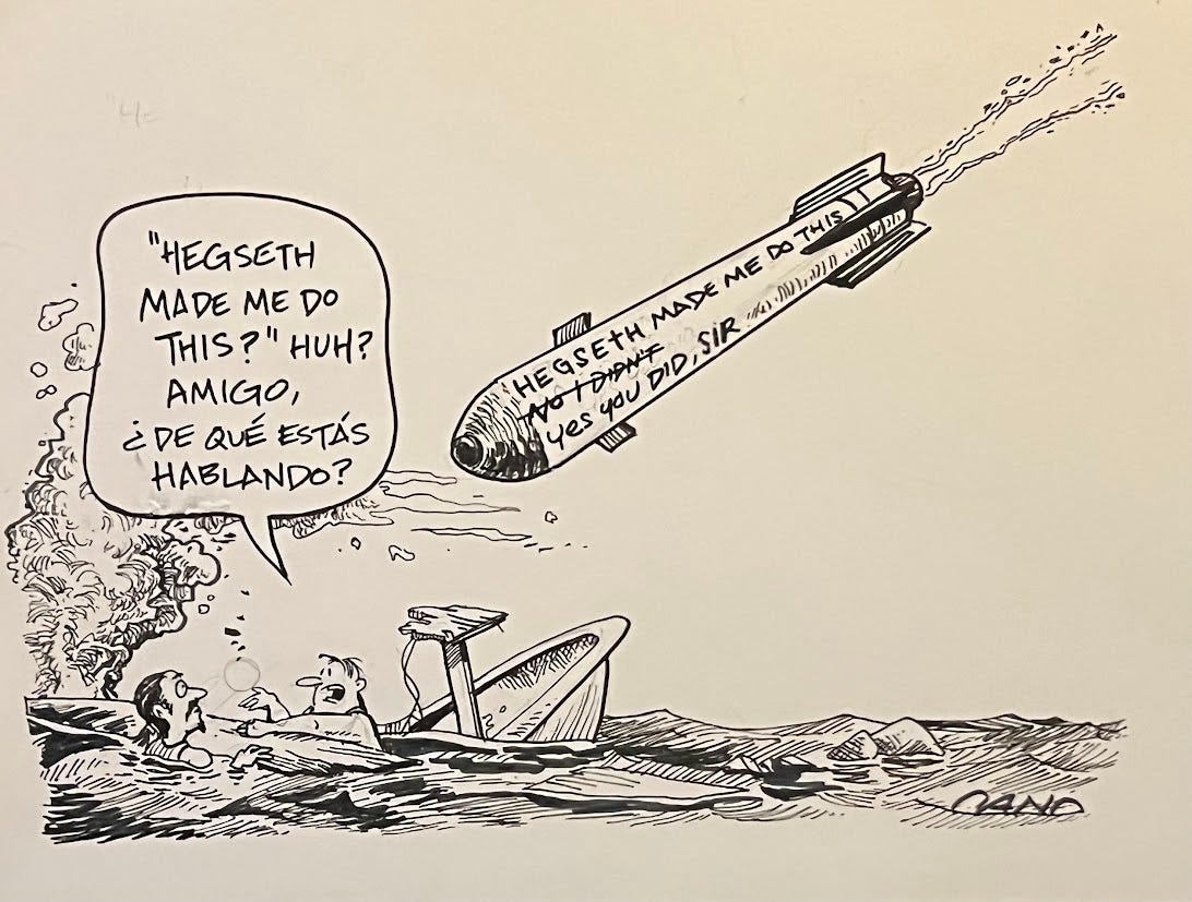 Hegseth Made Me Do ThisBrian CanoDec 16, 20252ShareBrian's Political Cartoon Show is a reader-supported publication. To receive new posts and support my work, consider becoming a free or paid subscriber.Subscribe
